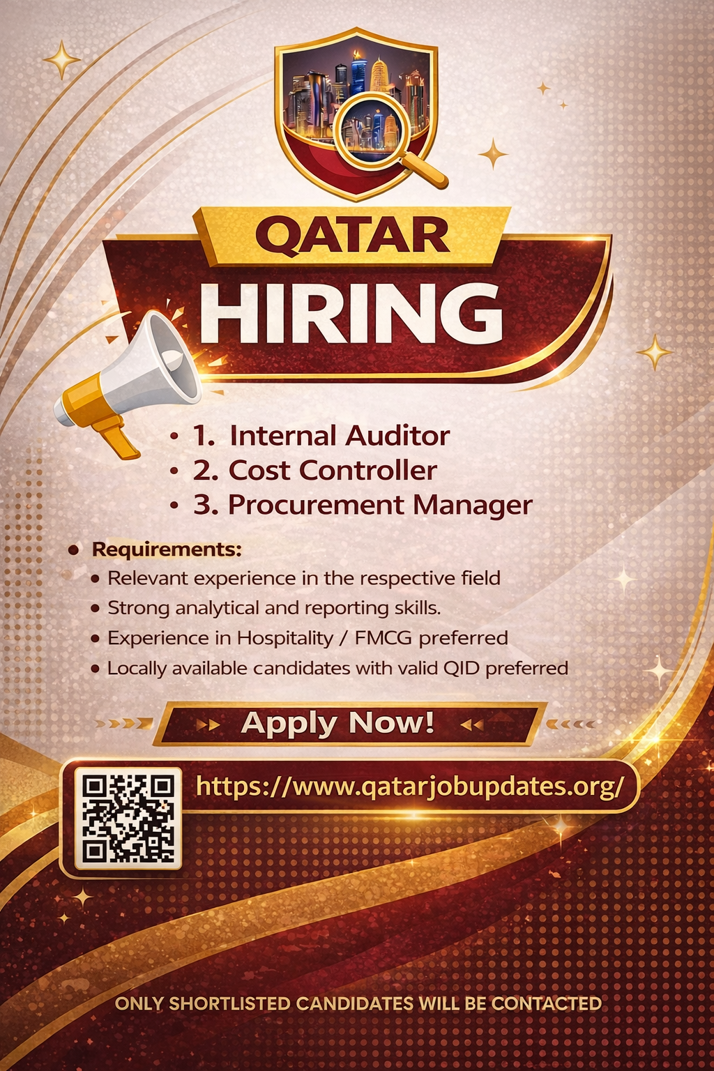Important Disclaimer: QatarJobUpdates.org shares job information collected from publicly available sources. We are not a recruitment agency and do not participate in the hiring process. We do not charge any fees for job applications. Candidates are advised to verify job details independently before applying. Never pay money for any job offer.