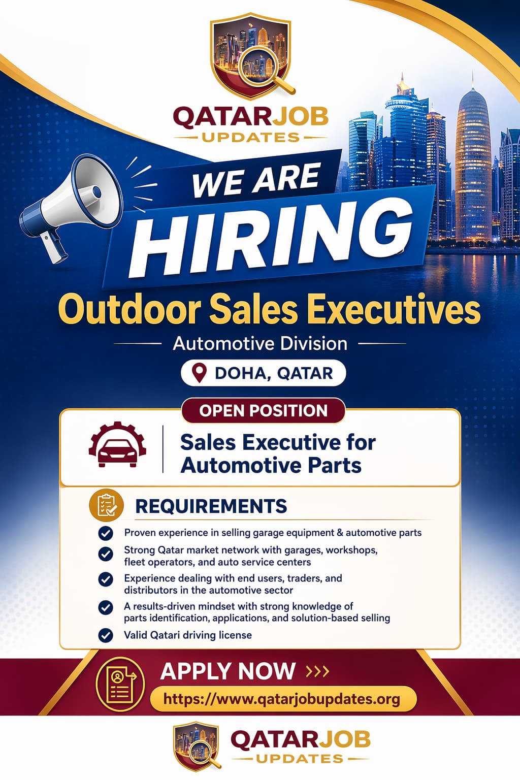Submit your application through the official Qatar Job Updates portal. This position is expected to fill quickly given the high demand for experienced automotive sales professionals in Doha โ apply today to avoid missing this opportunity.