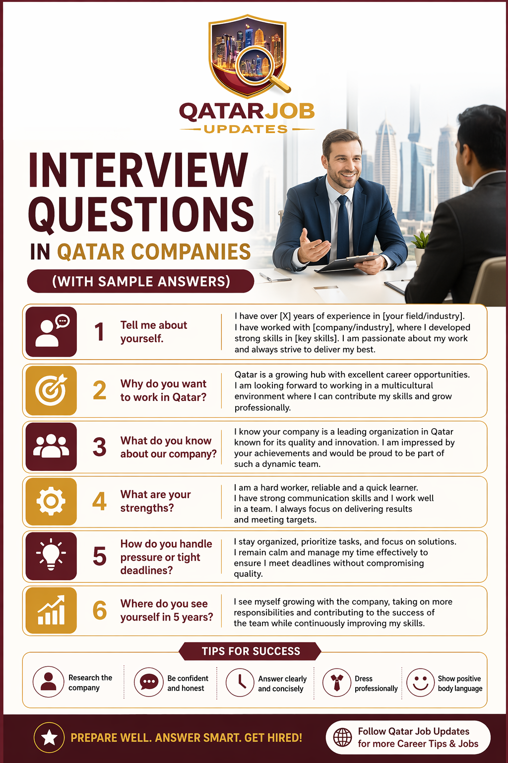 Qatar Job Updates shares job information collected from public sources. We are not a recruitment agency and do not charge any fees for job applications. Apply directly to the employer and beware of fraudulent job offers.