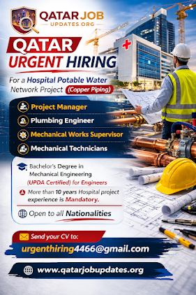 Supervisor, Mechanical Technicians for a hospital potable water network project (copper piping). Bachelor’s Degree in Mechanical Engineering (UPDA certified) for engineers (More than 10 years Hospital project experience is mandatory. Open to all nationalities.(urgenthiring4466@gmail.com)