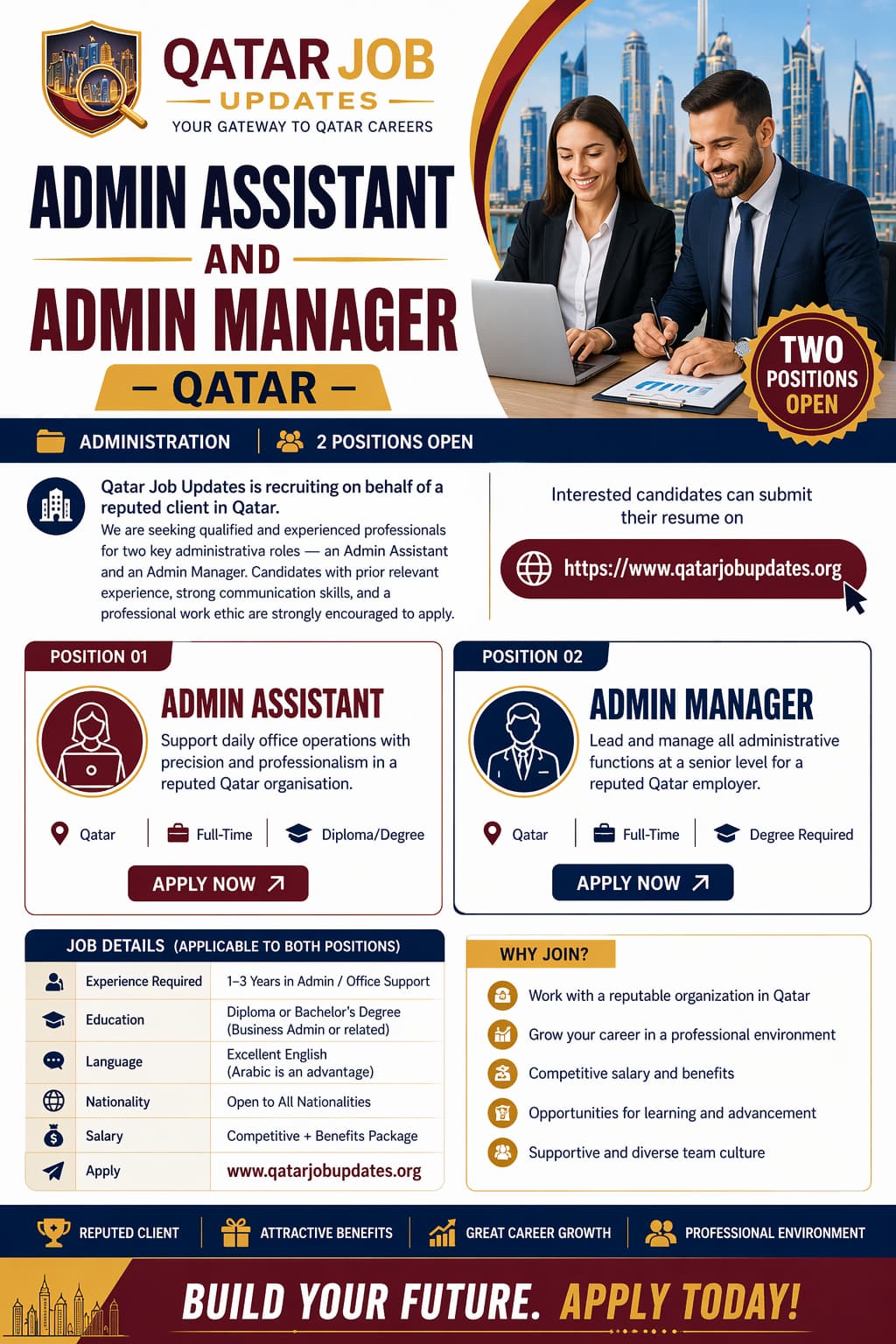 Submit Resume — Admin Assistant ↗Apply at: www.qatarjobupdates.org
