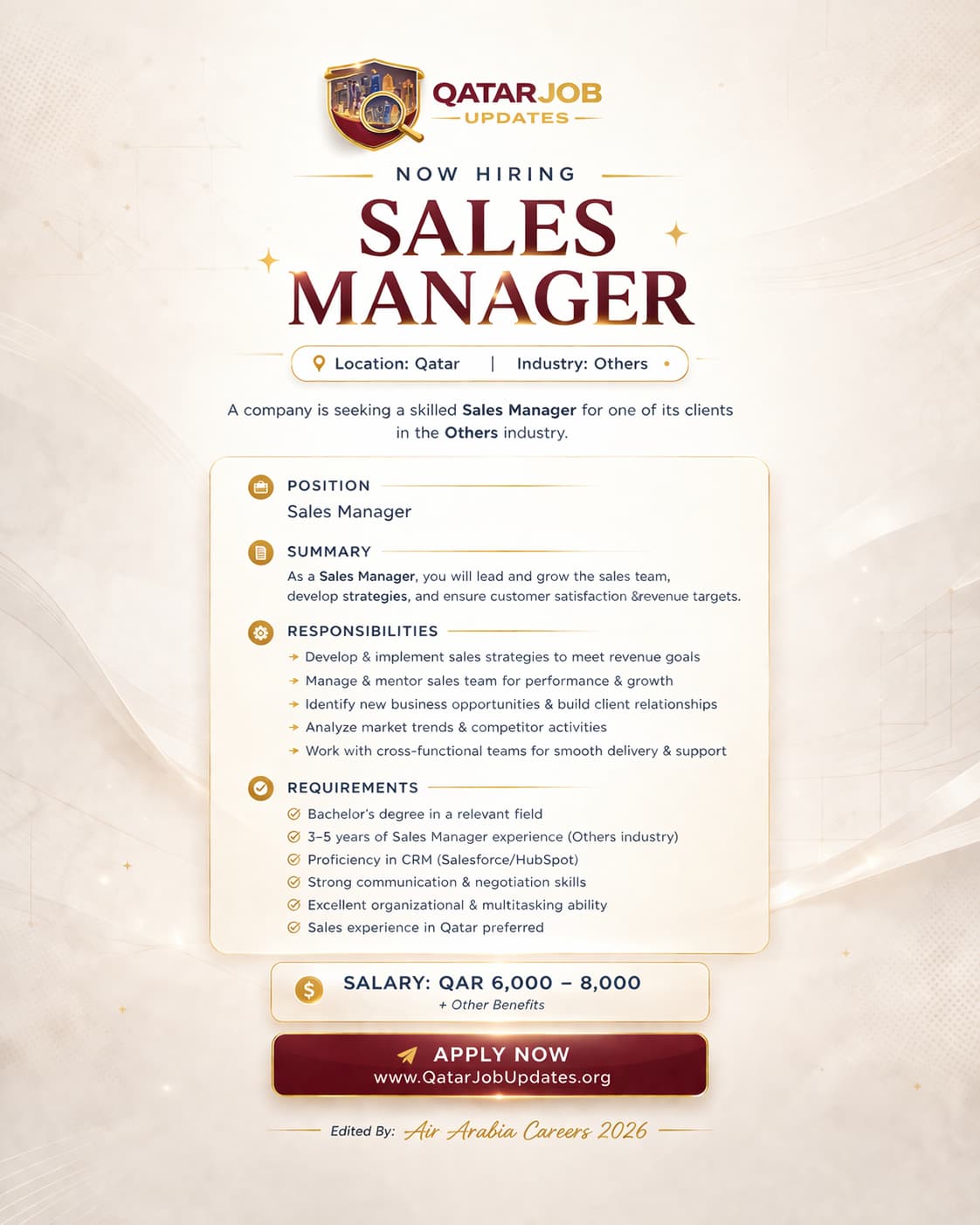 🔗 Apply at QatarJobUpdates.org www.qatarjobupdates.org- Visit www.qatarjobupdates.org and locate the Sales Manager listing